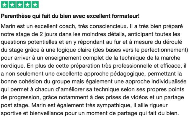 Si vous souhaitez bénéficier du tarif de groupe (à partir de 5 personnes) contactez-moi par e-mail : marin.ortega@marchons-nordique.fr